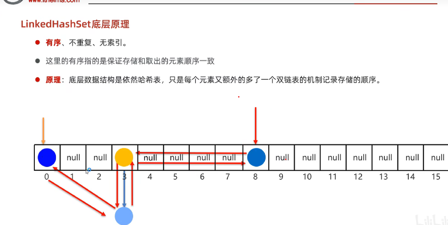 Hashset的无序原因:因为它是从0索引查找,如果为null,则跳过,遇到值在打印