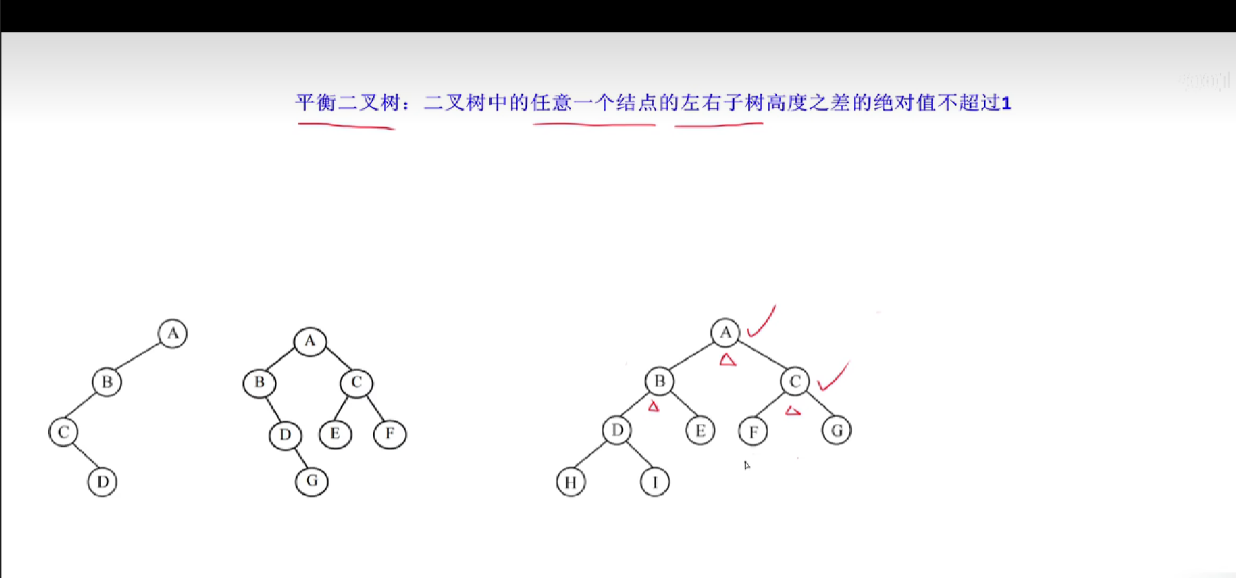 完全二叉树一定是平衡二叉树,平衡二叉树不一定是完全二叉树