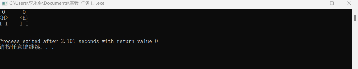 1 #include<stdio.h> 2 int main() 3 { 4 printf(" O O\n"); 5 printf("<H> <H>\n"); 6 printf("I I I I\n"); 7 8 return 0; 9 10 }