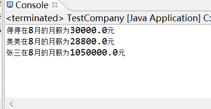 System.out.println(a.name + "在" + month + "月的月薪为" + a.getSalary(month)