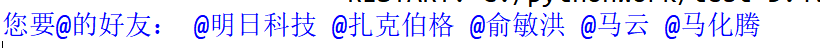 at = '@'+str_friend #由于使用join()方法时,第一个元素前不加分隔符,所以需要在前面加上@符号