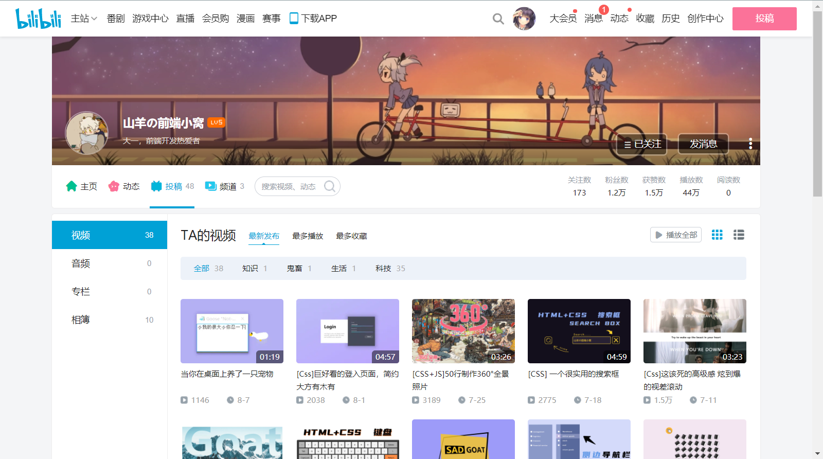 也是一位搞前端的up主,暑假之后应该是在上大二。