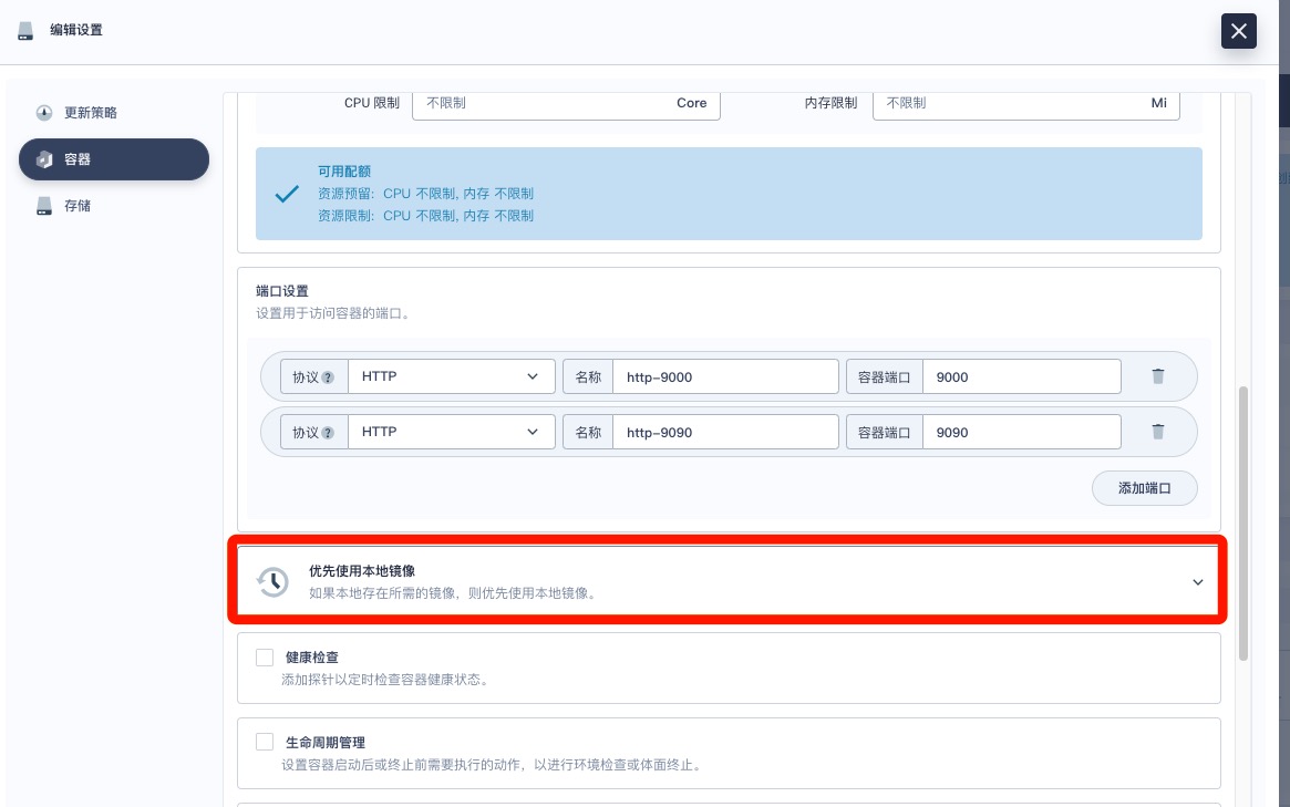 3)进入kubesphere后如果某些服务出现 imageerror,把镜像的拉去策略修改为”优先使用本地“