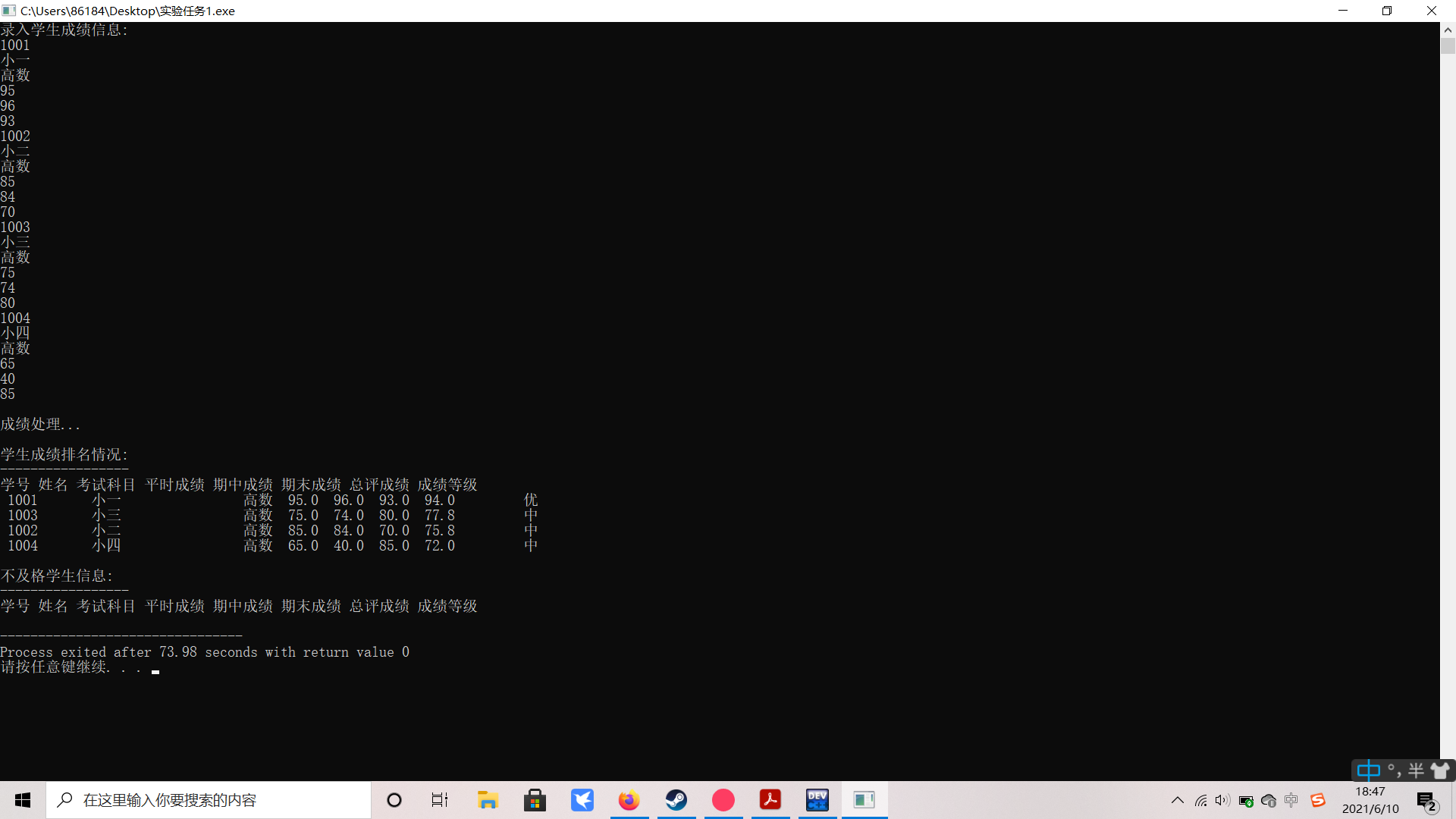 STU st[N],fst[N]; // 数组st记录学生信息,fst记录不及格学生信息