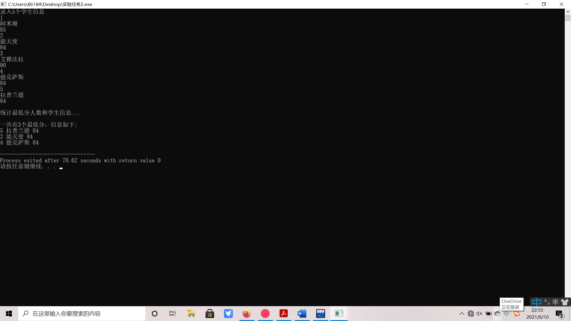 printf("\n一共有%d个最低分,信息如下:\n", count);