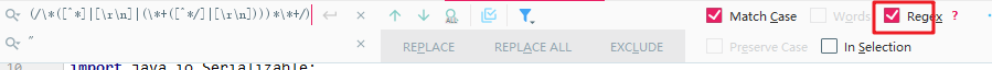 Ctrl+R,选中Regex正则匹配,进行替换