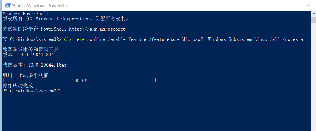 dism.exe /online /enable-feature /featurename:Microsoft-Windows-Subsystem-Linux /all /norestart