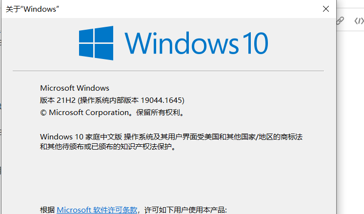 若要检查 Windows 版本及内部版本号,选择 Windows 徽标键 + R,然后键入“winver”,选择“确定”。