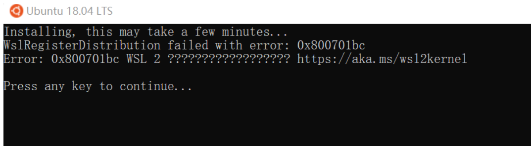 在后续安装Ubuntu的过程中,出现了wsl的报错 WslRegisterDistribution failed with error: 0x800701bc