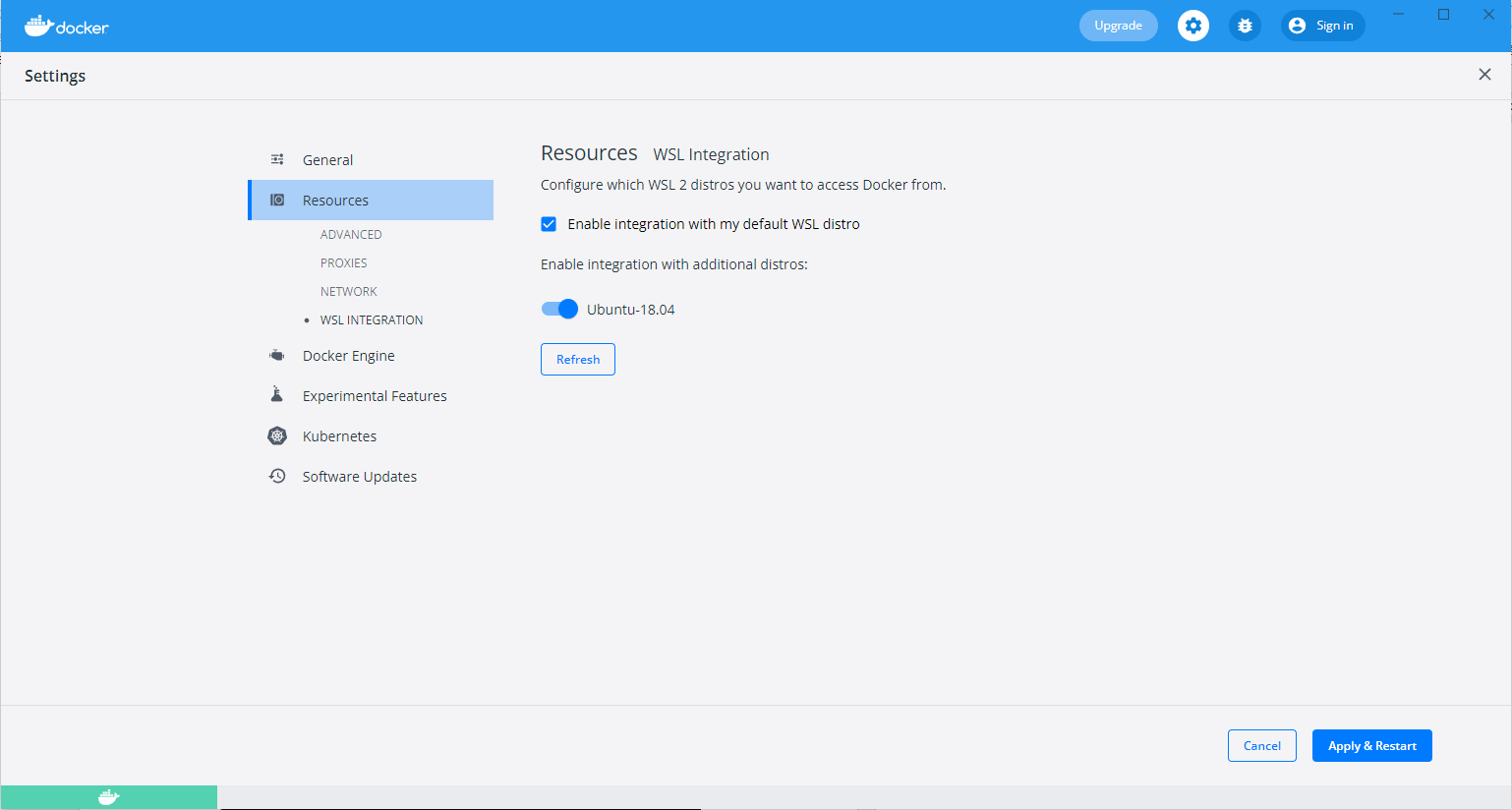 首先打开docker desktop,进入右上角的设置中,resource->WSL INTEGRATION,找到自己所使用的wsl2虚拟机按钮,即可打开相应的docker。