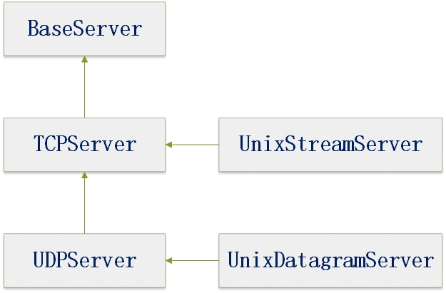 基于TCP的socket只能实现一对一服务。比如当一个客户端与服务端在进行通信时,另一个客户端此时只能处于等待状态,直到服务端结束当前通信开始下一轮通信。如果想实现socket的并发编程,我们可以使用socketserver模块。该模块的实现原理是基于socket和线程的组合。如果对socketserver的实现原理感兴趣,可以参考socketserver模块的源码。socketserver模块分为Server类和Request类。Server类一般多用于处理连接,Request类多用于处理通信。以下分别是官方文档Server类和Request类某些具体类的继承结构图。
