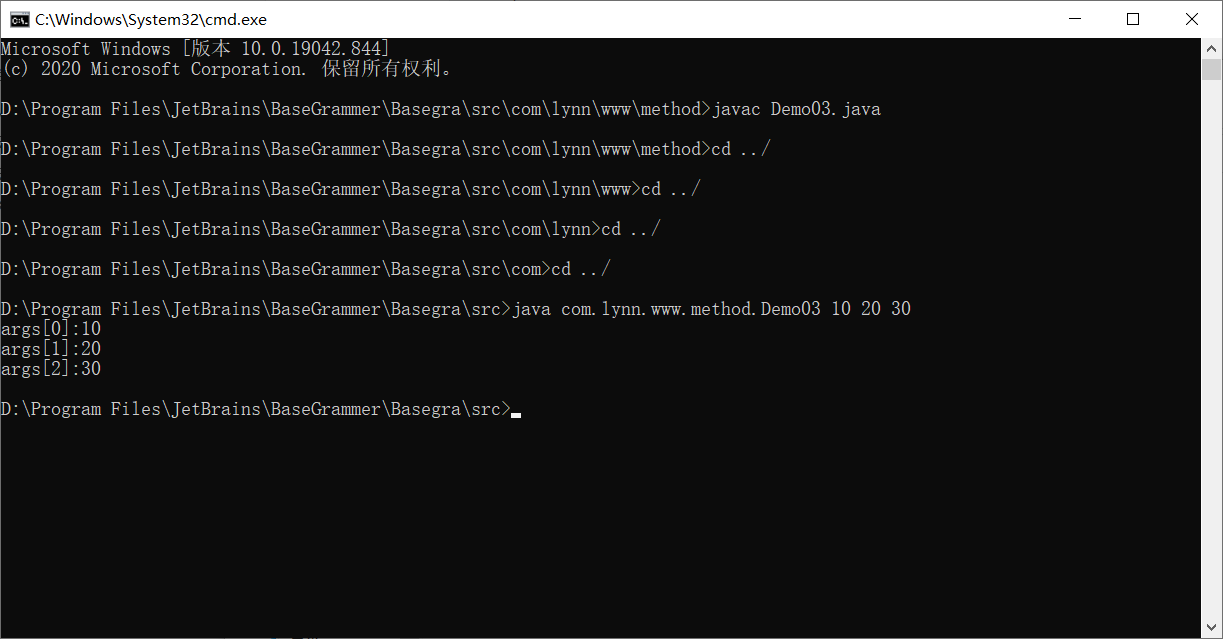 具体流程:打开项目文件夹,从当前文件位置导航栏进入 cmd,编译需要运行的 java 文件。退回到 src 目录运行编译后的 class 文件,在文件名后加上参数,enter 出结果(注意需要退回到 src 目录运行 class 文件)。