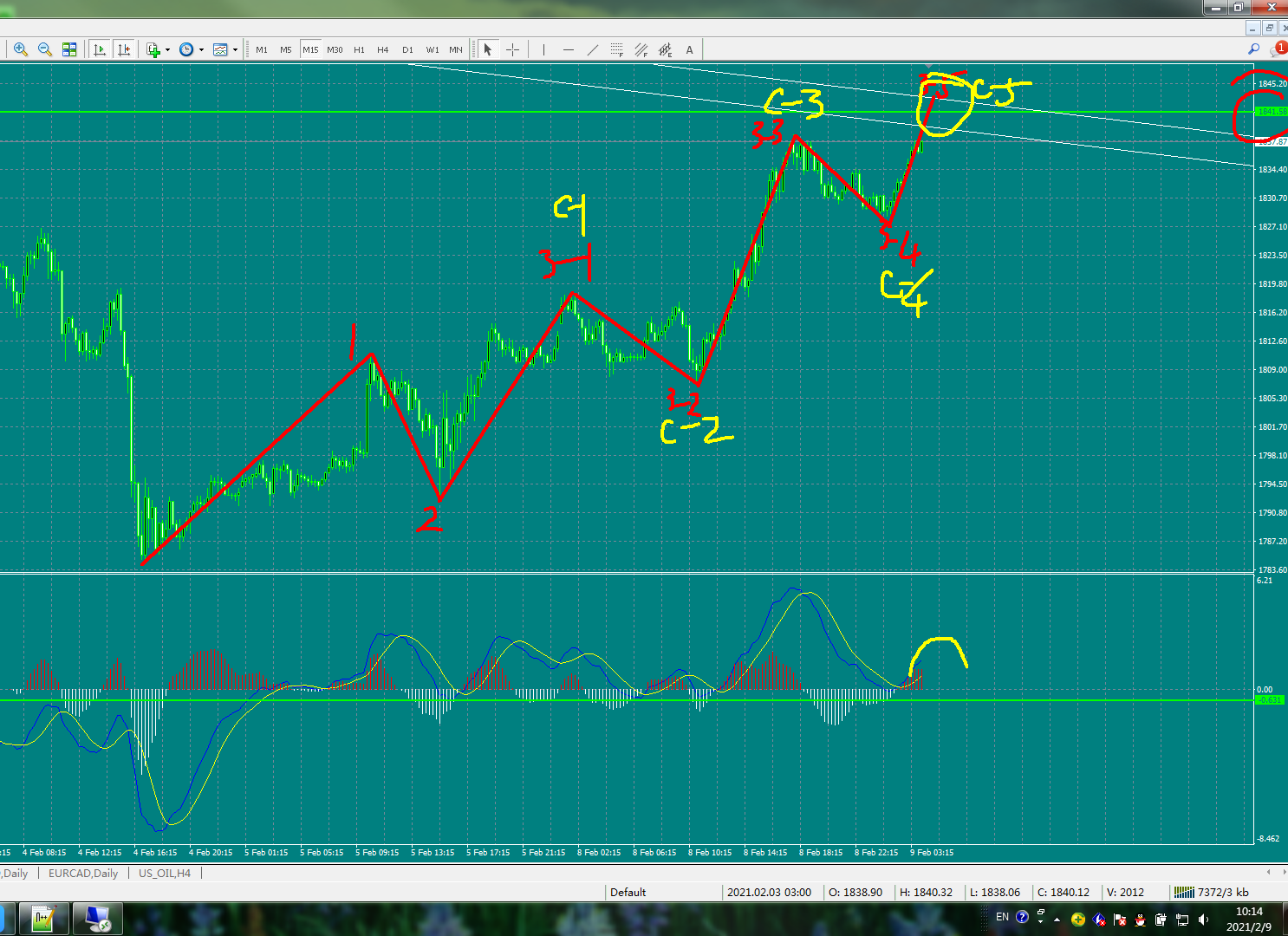 如逾期 黄金来到1840附近 到底是ABC反弹结束 还是3-5突破1840 周三揭晓。