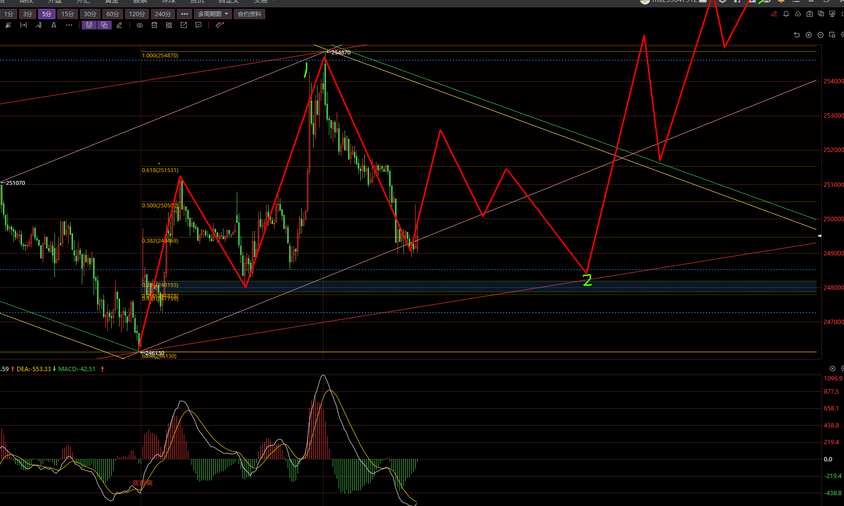 周初如果走出这个形态 看涨 跌破248000 反弹就要空了。 周初看震荡。