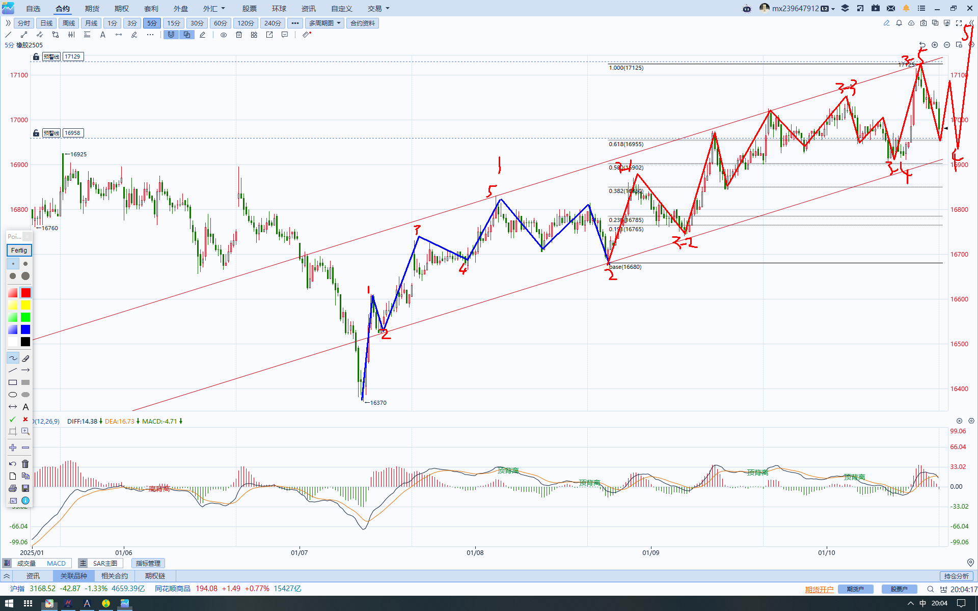 短线看3-4不破156900不破的话 还有个第五波上涨波段。