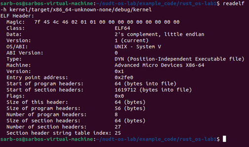 对比readelf -h kernel/target/x86_64-unknown-none/debug/kernel和GDB中的调试信息,找出kernel/target/x86_64-unknown-none/debug/kernel的入口地址
