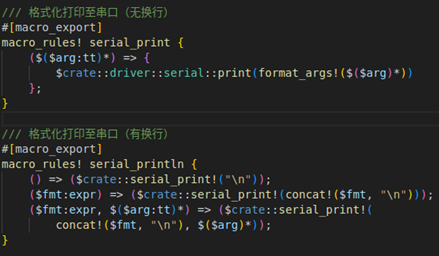 在kernel/serial.rs中实现的serial_print与serial_println如下: