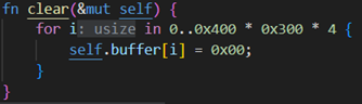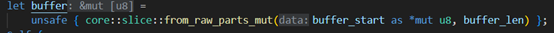 Buffer_start表示buffer起始的位置,info是沿用的lib.rs中关于FrameBuffer的定义,stride和column_position分别表示的是要写的字符的位置在列/行中的位置。接下来我们定义的是关键内容,buffer,即为我们所在窗口输出文件时需要修改的数组。当我们对于数组中的数据进行修改时,我们所显示在窗口的界面就会相应地发生变化。