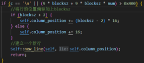 这个是我们方法的主要实现部分,大体上我们可以划分成两个部分:判断是否换行,并相应调整行号;对于相应的字符,我们输出一定大小的字符。