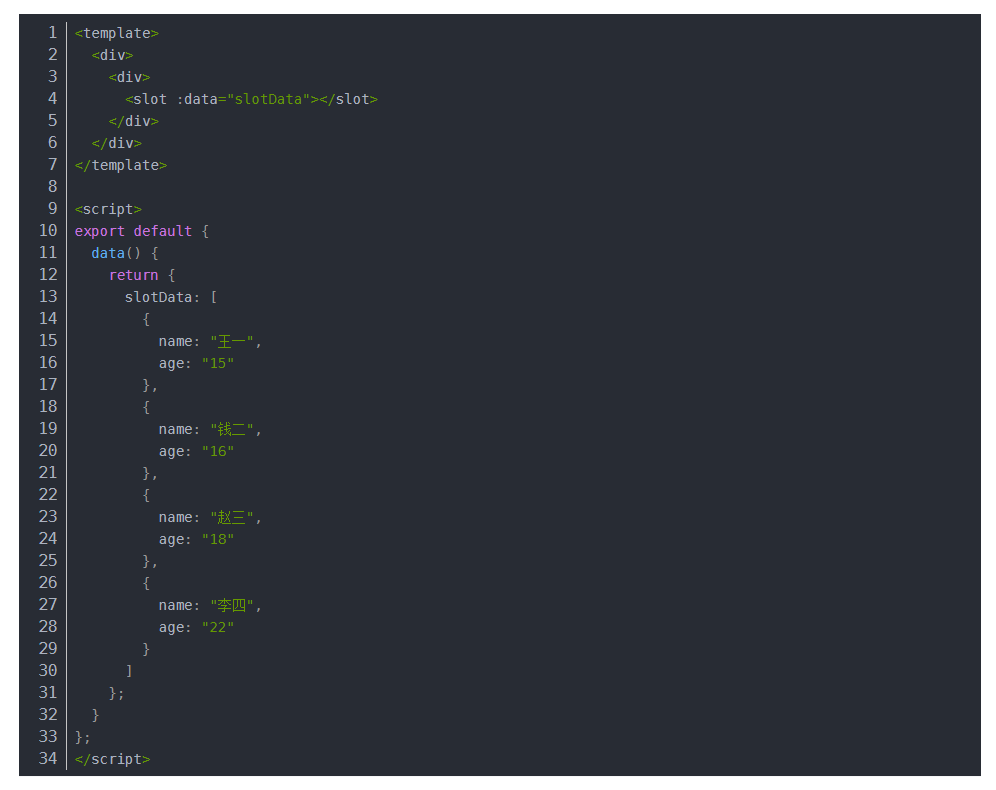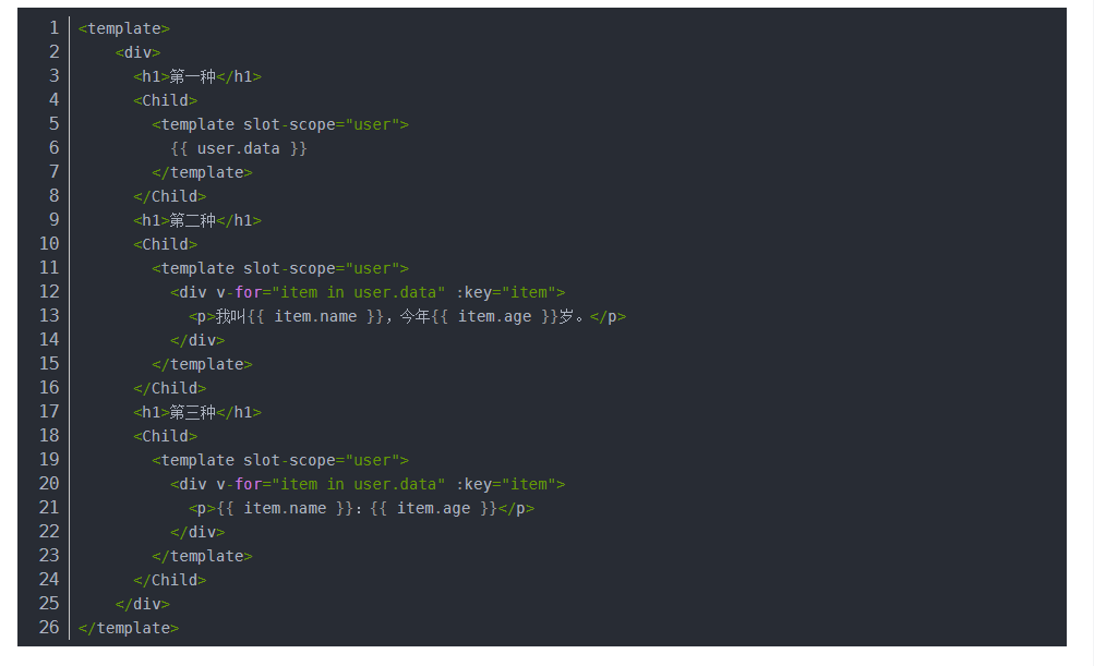 当同一些数据需要不同的展示效果的时候你可以使用作用于插槽,也就是数据插槽。