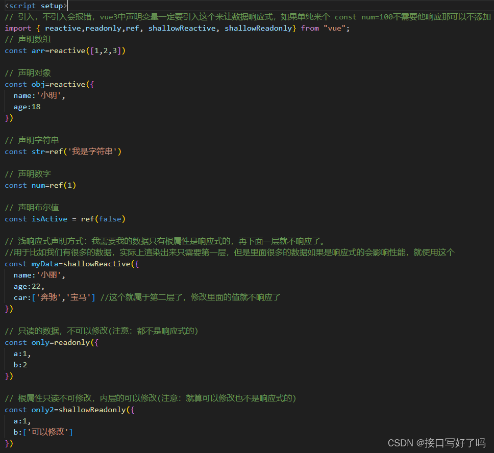 只读的不想修改的数据用readonly (注意不是响应式的)