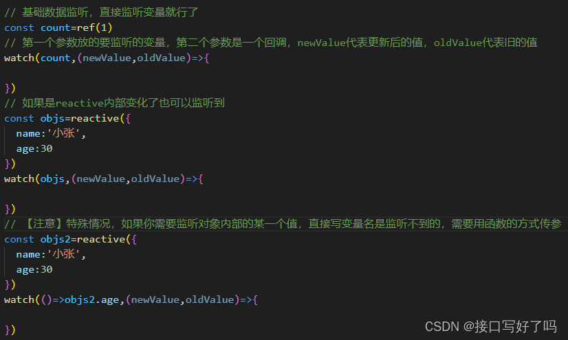 注意:要引入这个函数才行,不然不生效。还有内部如果监听的是ref的值,要监听变量的value