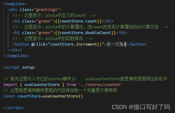 【注意】直接countStore.xxx使用没问题,但是如果我们想解构出countStore里面的内容,就会破坏响应性。