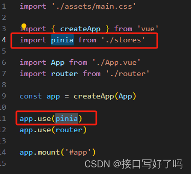 1,目前是在main.js里面导入的pinia,封装可以让main.js少一些代码,更加简介