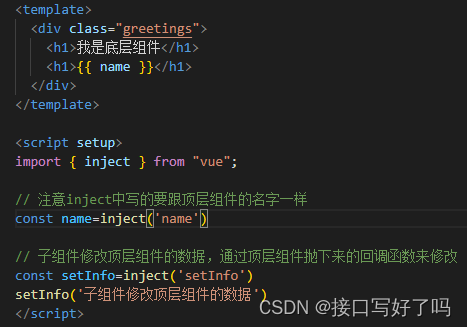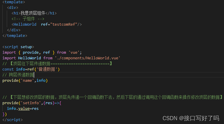 provide和inject跨层级传递数据(不光是父子传,可以爷孙传,或者更多层级的传递数据)
