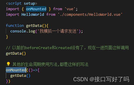 因为用了setup语法糖,所以没有办法写一些平级的属性,所以要写在这个api里面就可以了。