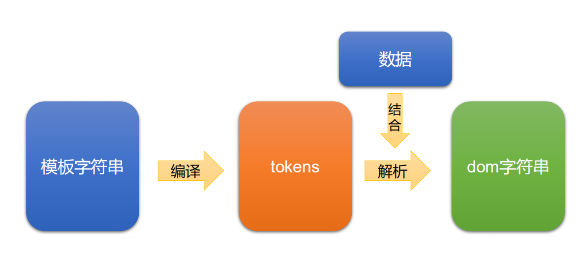 tooken与数据结合时,采用递归的思想,有获取a.b.c的情况,采用lookup函数,循环遍历数据的数组,数据的长度就是递归的次数,将字符串拼接,最后innerHTML。