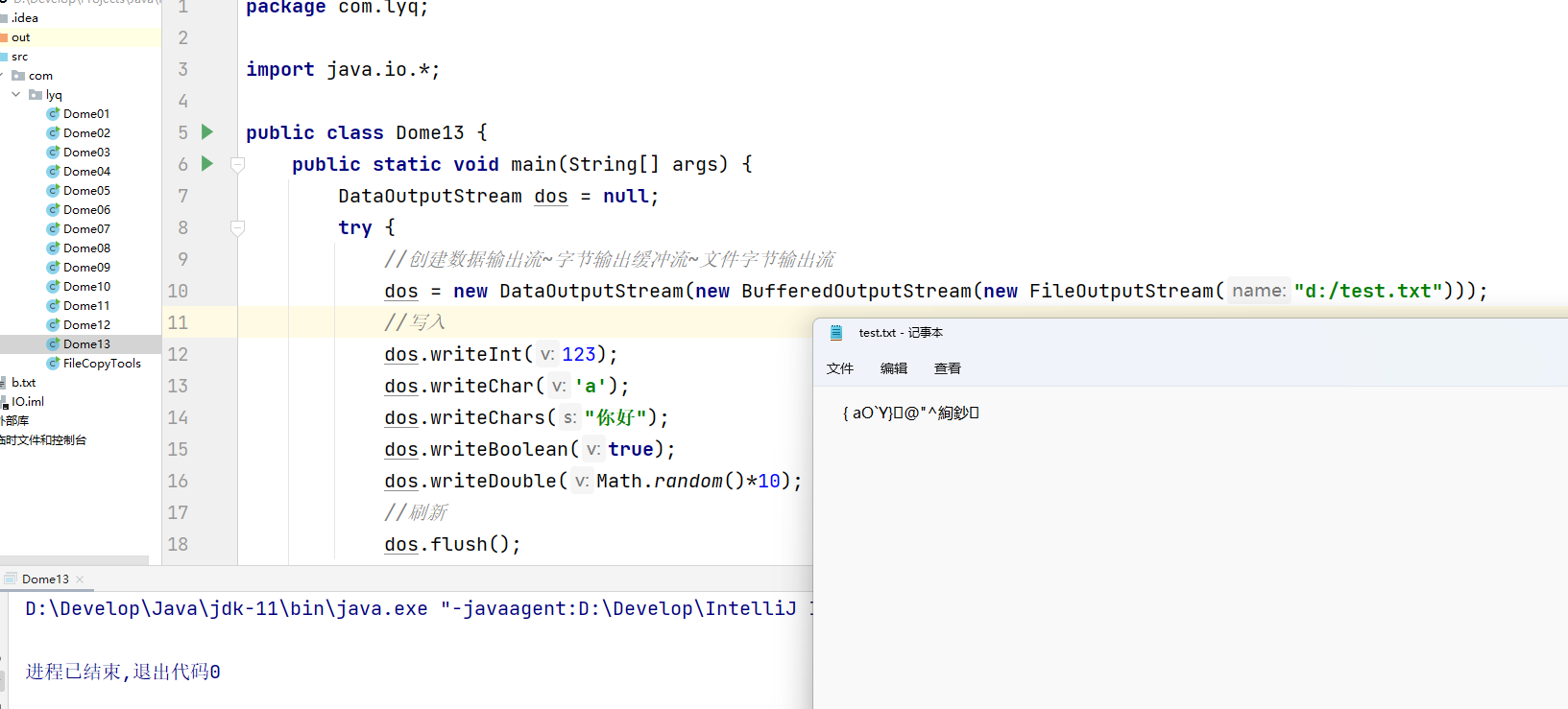 }因为是用文本格式去查看我们写的数据,但是这些数据是用字节是写入的,所以可能出现乱码 ![]()