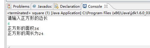 在主类中,输入一个正方形边长,创建正方形对象,求正方形的面积和周长。