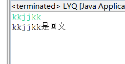 import java.util.Scanner; public class LYQ { public static void main(String[] args) { Scanner scanner=new Scanner(System.in); String s=scanner.nextLine(); StringBuffer s1=new StringBuffer(s); s1.reverse(); String s2=""+s1; if(s.equals(s2)){ System.out.println(s+"是回文"); }else{ System.out.println(s+"不是回文"); } } }