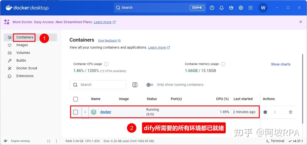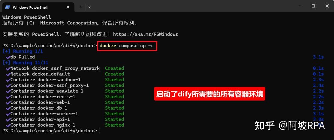 此时回到docker桌面客户端可看到,所有dify所需要的环境都已经运行起来了