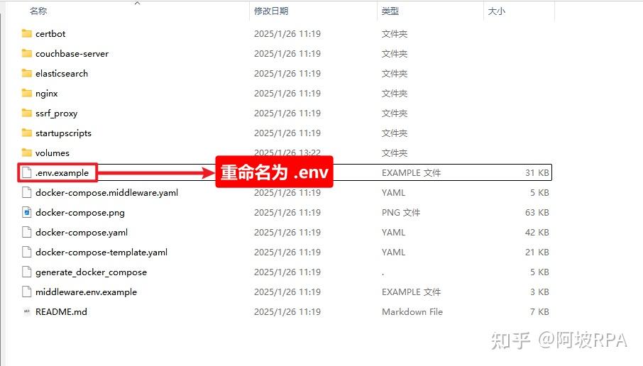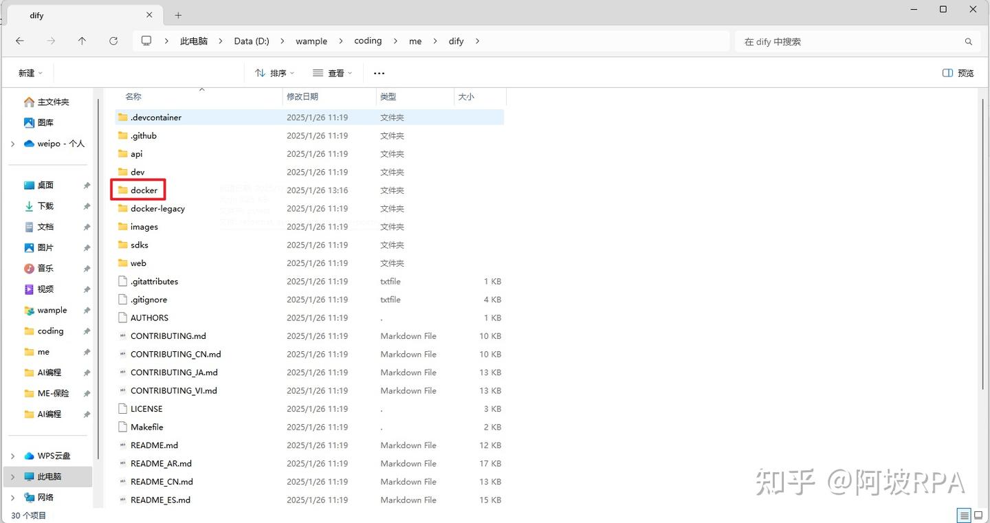 找到dify项目下的docker文件夹并进入,前面已经将.env.example