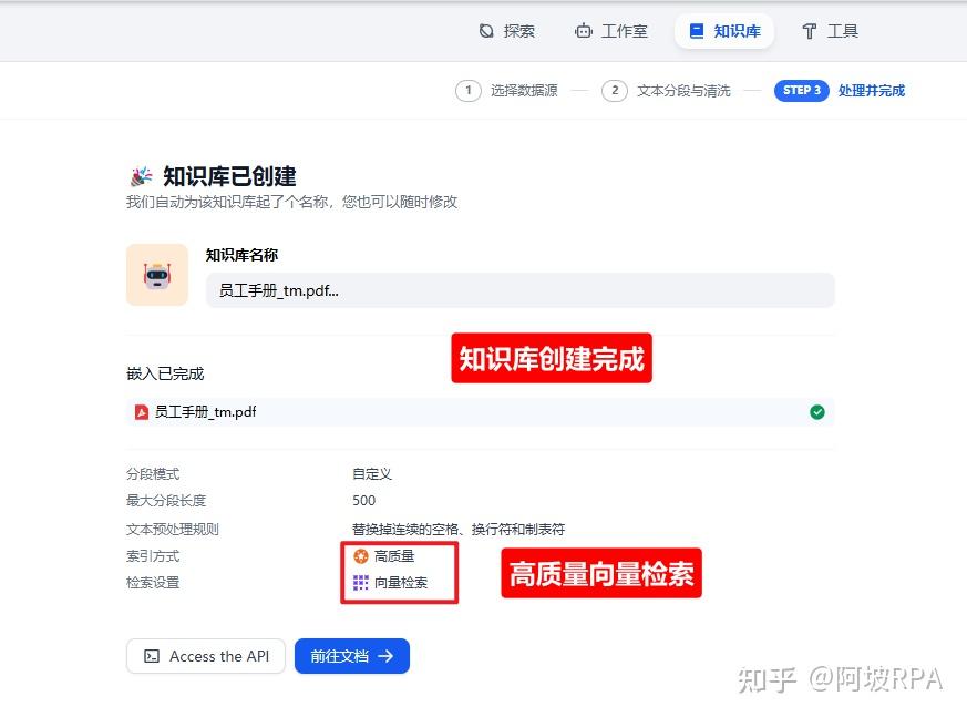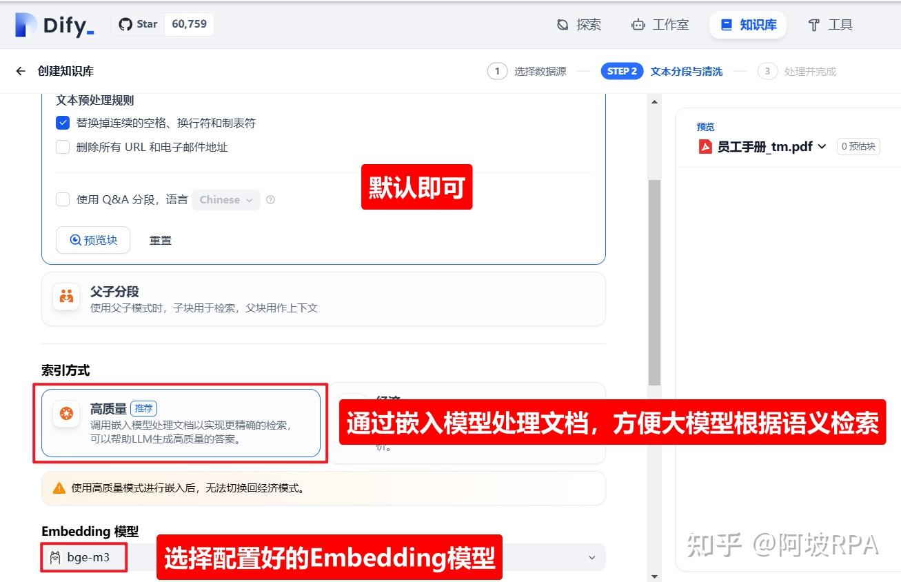 我们上传的资料要通过Embedding模型转换为向量数据存入向量数据库,这样回答问题时,才能根据自然语言,准确获取到原始数据的含义并召回,因此我们需要提前将私有数据向量化入库。