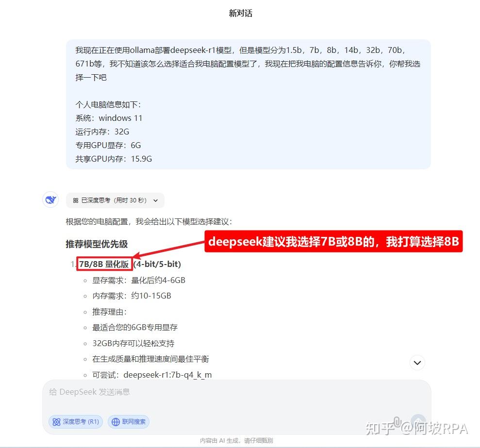 我现在正在使用ollama部署deepseek-r1模型,但是模型分为1.5b,7b,8b,14b,32b,70b,671b等,我不知道该怎么选择适合我电脑配置模型了,我现在把我电脑的配置信息告诉你,你帮我选择一下吧