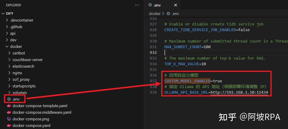 然后,配置本地内网IP到dify的docker部署配置文件内