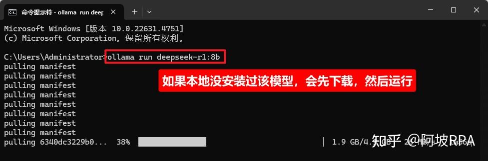ollama安装完后,没有图形界面,安装大模型,可以类比为docker拉取镜像,因为很多操作命令类似