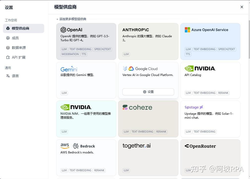 支持接入的大模型供应商几乎涵盖了全球所有知名大模型供应商