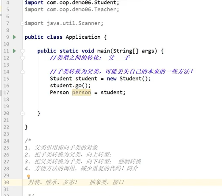 高转低需要强制转换,低转高不用强转,但有可能丢失本来属于自己的方法
