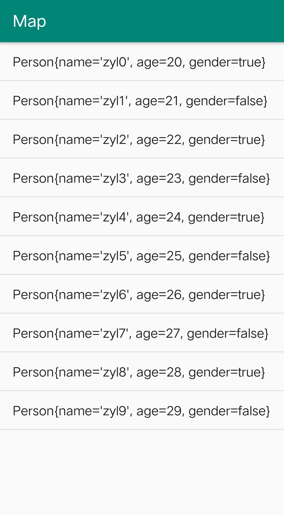 Person person = new Person("zyl"+i,20+i,i%2==0?true:false);
