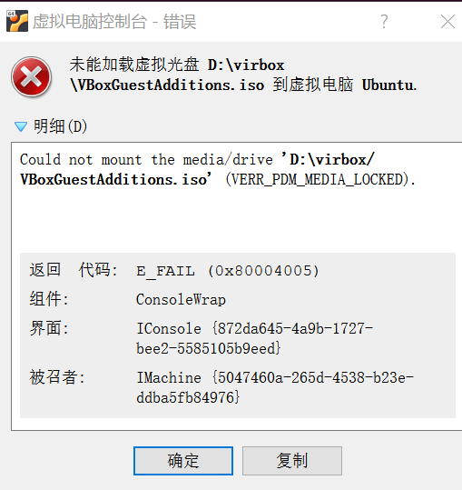 点击后出现错误virtualbox虚拟机内安装增强功能未能加载虚拟光盘
