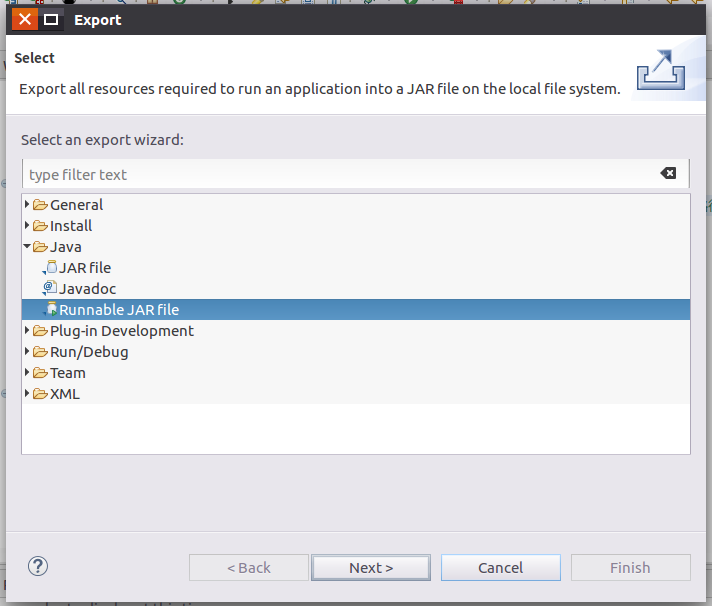 然后在export弹窗中找到Java文件 Java->Runnable JAR file,后点击next