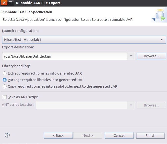 最后选择要打包的项目,存放打包项目的位置,然后finish就可以进行打包了。