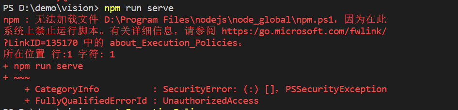npm 报错,npm无法加载文件,再此系统上禁止运行脚本