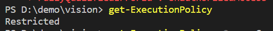 在终端运行:get-ExecutionPolicy ,显示Restricted (表示没有权限)