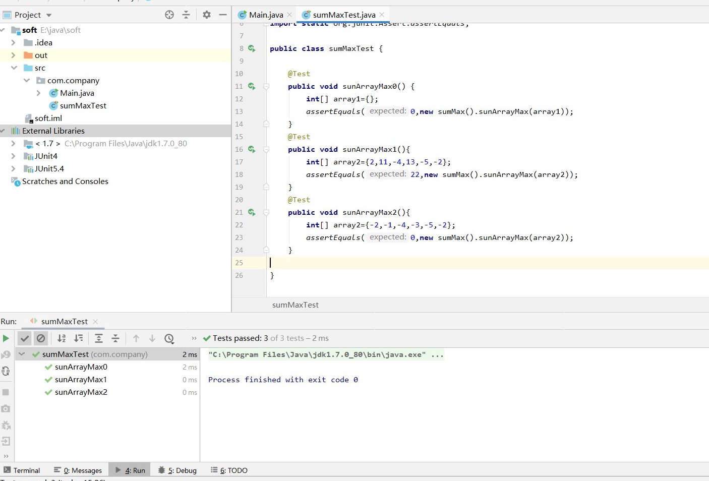 - 测试3:数组为{-2,-1,-4,-3,-5,-2}(经过路径b、c、e)
