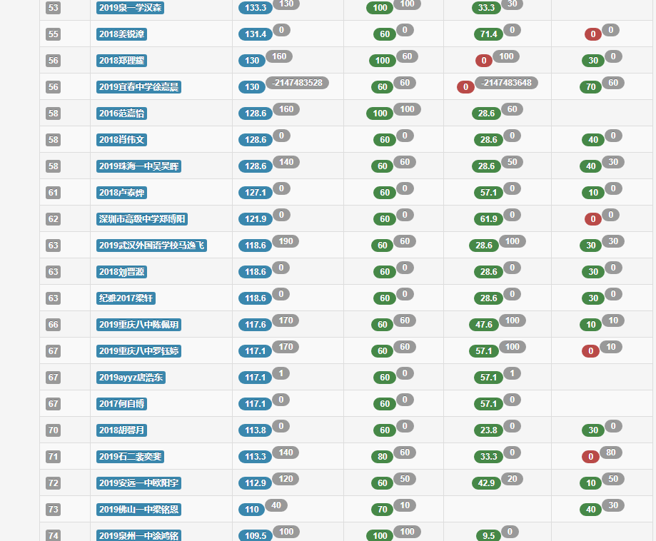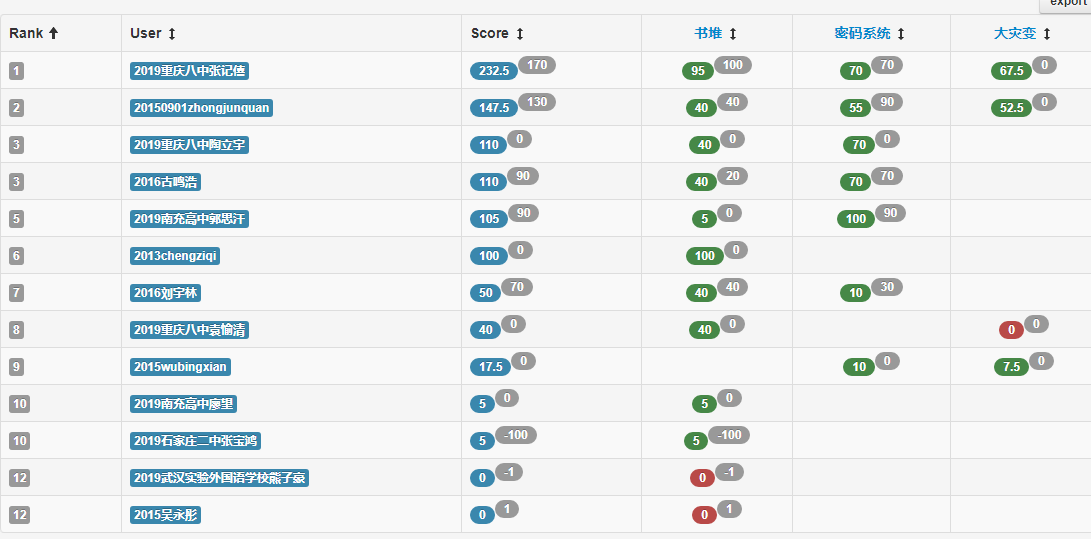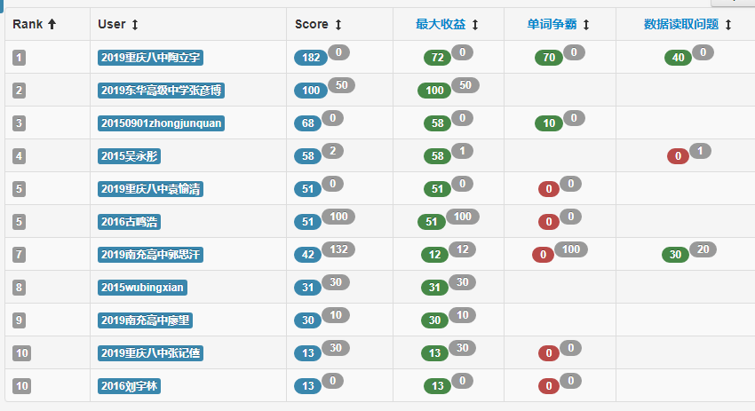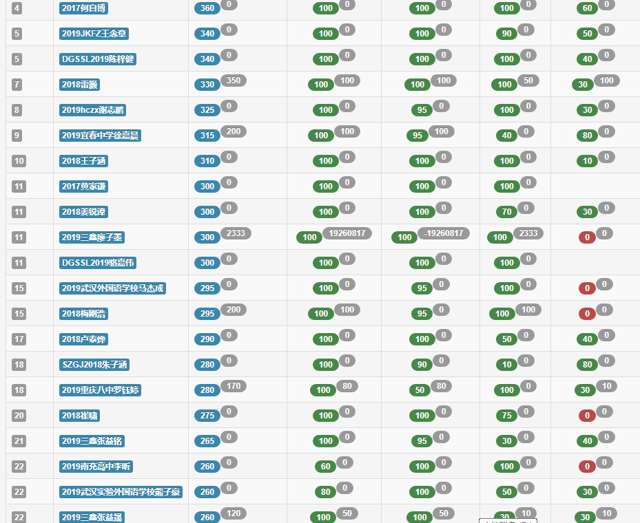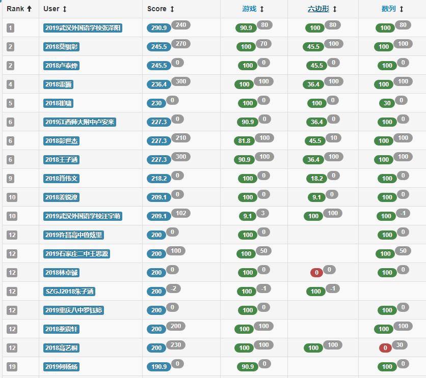 还有,原来纪中的OJ是只算最后一次提交的成绩吗2333 整理代码的时候合并了vis数组,无意中改了一个错误,结果后面不知道为什么又把原版代码交了一遍。第一次:40分,第二次:20分。要是多20分rk就会上浮10名了qwq